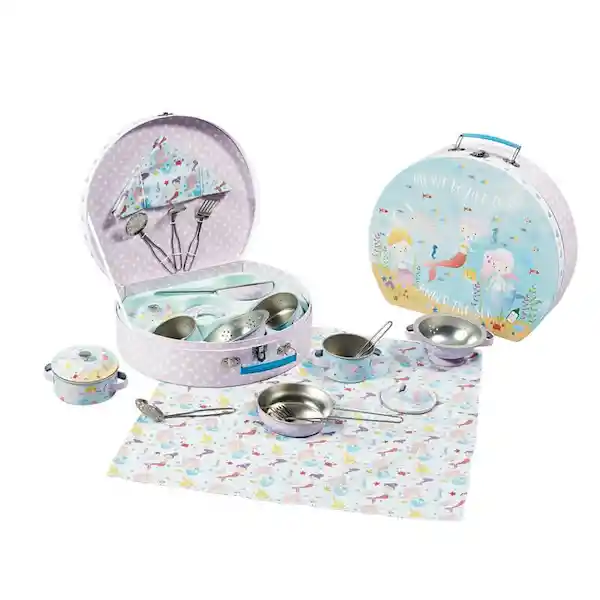 Set de Cocina Contiene 10 Piezas. Cocina Como Una Sirena Bajo Del Mar. Incluye: Mantel 1 Und + Ollas + Utensilios. ¡La Maleta También Servirá de Cocina Para Ayudar Con el Proceso! Tamaño: 28.5 x 33 x 9 cm Edad Recomendada: 3+