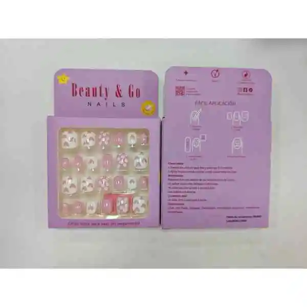 ¡Frescura y alegría! Flower Heart combina colores rosado bebe, un diseño único para niñas alegres y con mucho encanto. Forma: Cuadrada Corta Kit Incluye: 24 uñas con sticker incorporado, lima, palo de cuticula y alcohol pad. 100% veganas, libres de crueldad animal, listas en 10min y duran hasta 1 semanas.