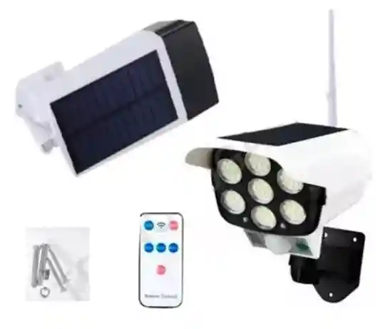 DESCRIPCION DEL PRODUCTO: * Luz solar con sensor de movimiento: sensor de movimiento y noche PIR incorporado, se pueden ajustar estos modos: 1- Función de inducción del cuerpo humano (la luz se enciende cuando una persona pasa y se apaga 20-30 segundos después de que la presona se va). 2- Modo de inducción del cuerpo humano con poca luz (se enciende cuando la gente pasa, poca luz 20-30 segundos después de que la gente se va y se enciende de nuevo cuando alguien pasa. 3- Modelo con poca luz (la lámpara está siempre en el estado de poca luz, por ejemplo, independientemente de que haya personas o no). IP65 a prueba de agua: las luces de doble cabezal al aire libre solares son impermeables y resistentes a la intemperie para todo tipo de clima severo. Perfecto para jardín al aire libre, entrada, puerta de entrada, pared, calle, garaje, pasarelas, patios, ventanas, etc. Nota: deje que la cabeza de la luz baje un poco, de lo contrario, el agua fluirá fácilmente hacia la luz. Ahorro de energía y respetuoso con el medio ambiente: para cargar esta luz de seguridad, solo necesita colocar el panel solar bajo la luz solar directa durante el día. Sin costo de electricidad, ahorro de energía y batería ecológica cargada por un panel solar incluido con 3.7V. Trabajo prolongado con batería - La luz de seguridad con batería de 2400 mAh puede ofrecer hasta 8 horas de uso. Ajustable y fácil de instalar - La luz solar es bastante fácil de instalar. Y la rotación puede ajustar el ángulo de iluminación óptimo y el ángulo del panel solar. __________ CARACTERISTICAS DEL PRODUCTO: - Panel solar: 5V 2W Max. - Batería de iones de litio: 3.7V 2600mAh. - Cantidad de LED: 77led. - Temperatura de color: blanco (6500k). - Retardo de tiempo: 15-20 segundos. - Ángulo de movimiento: 120 grados. - Distancia de movimiento: 26 pies. - Modos de conmutación: tres modos, mantenga pulsado 3 segundos para encender una luz, pulse brevemente 1 segundo para cambiar de modo. - Material: plástico ABS. - Peso: 0,37 kg (0,81 lb). - Tamaño: 20 x 9 x 9,5 cm (7,8 x 3.5 x 3.7 pulgadas). - Temperatura de trabajo: -10 a 60 grados centígrados. - Control remoto.