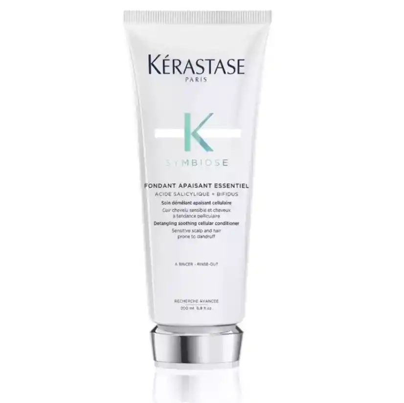 Acondicionador Fondant Apaisant Essentiel - Moza Bonita Tratamiento celular desenredante y calmante para cuero cabelludo sensible y propenso a la caspa. Symbiose Fondant Apaisant Essentiel de Kérastase es un acondicionador celular calmante desenredante sin sulfatos ni siliconas para cuero cabelludo sensible con tendencia a la caspa. Contiene ácido salicílico para un cuero cabelludo transpirable y bifidus para un cuero cabelludo saludable. Una fórmula hidratante para calmar molestias y preservar la barrera del cuero cabelludo. Cuidado intenso pero ligero para el cuero cabelludo y los largos. Reduce la sensibilidad del cuero cabelludo después de la primera aplicación y aumenta la vitalidad del cabello con el tiempo. El Fondant Apaisant Essentiel tiene una textura balsámica blanca muy sensorial y lujosa combinada con una lujosa fragancia fina. Acondicionador - Sin Sulfatos - Caspa - Sin Siliconas ¿Qué hace? - Reduce la sensibilidad del cuero cabelludo después de la primera aplicación y con el tiempo. - +20 % de hidratación del cuero cabelludo inmediatamente después de la aplicación. - El 84% dijo que después de usar el producto se sintió relajado. - El 100% dijo que el producto no apelmaza el cabello. - El 97 % dijo que la fibra está más hidratada y el cabello más nutrido. - El 90% dijo que el cuero cabelludo está nutrido. - El 84% dijo que el producto alivia las molestias del cuero cabelludo y que el cuero cabelludo se reequilibra. Ingredientes principales Una sinergia única de activos, infundida en lujosas fórmulas, crea una protección instantánea y a largo plazo contra la caspa. Ácido salicílico: ayuda a disolver las escamas y actúa sobre las consecuencias de la caspa. Extracto de bífido: conocido por ayudar a mantener un ecosistema saludable del cuero cabelludo. Glicerina: hidratante de origen natural, que aporta al cabello suavidad e hidratación. Aroma fresco Symbiose Creada por perfumistas franceses, la fragancia única de Symbiose es un viaje chispeante y jugoso liderado por la frescura de la mandarina y la naranja sanguina. Modo de Uso Aplicar sobre el cabello lavado con champú y secado con toalla. Masajear cuero cabelludo, largos y puntas. Dejar actuar de 2 a 3 minutos. Agregar agua, emulsionar y enjuagar bien. Cantidad: 200ml