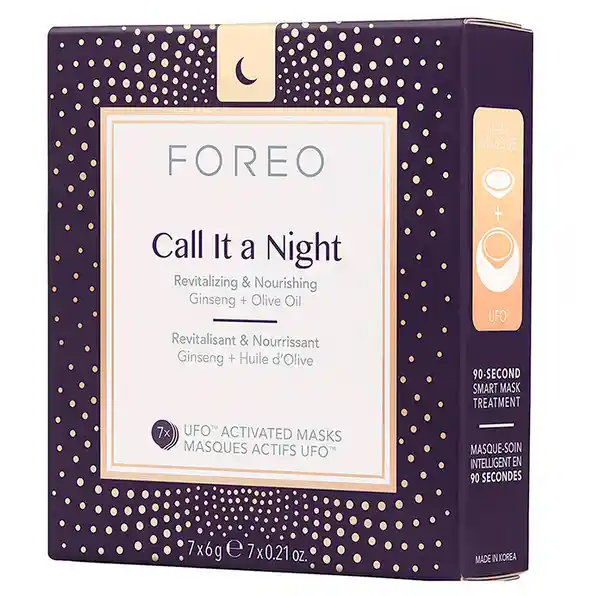 Ufo Call It a Night - Mascarilla Activa Ufoesta Fórmula de Mascarilla de Alta Gama se Combina Con un Programa Ufo Único Diseñado Para Asegurar Una Piel Sana de la Noche a la Mañana Transformando un Tratamiento de 20 Minutos en un Placer de 90 Segundos. La Máscara Debe Aplicarse Con el Dispositivo Ufo Para Beneficiarse de un Programa Único Adaptado a tu Piel. La Mascarilla Ufo Call It a Night Mask Contiene Ginseng y Aceite de Oliva Para Nutrir y Revitalizar: Una Fórmula Que Vigoriza la Piel Durante la Noche. Diversión de 90 Segundosla Máscara Ufo Call It a Night Comienza Con 30 Segundos de Pulsos T-Sonic de Alta Frecuencia Combinados Con Termoterapia y Luz Led Roja Para Penetrar Las Esencias Debajo de la Piel. Los Pulsos T-Sonic se Mueven a Una Frecuencia Más Baja la Luz Led Roja se Mantiene y la Termoterapia Apagada Para Centrarse en Mejorar la Circulación Sanguínea y Restaurar la Elasticidad de la Piel. El Futuro de la Mascarilla de Tejidola Mascarilla de Microfibra Ultra Suave Call It a Night Ultra Brinda Una Piel Impecable Desde el Atardecer Hasta el Amanecer Con un Programa de Tratamiento Único Conotrolado Con la Aplicación Ufo.