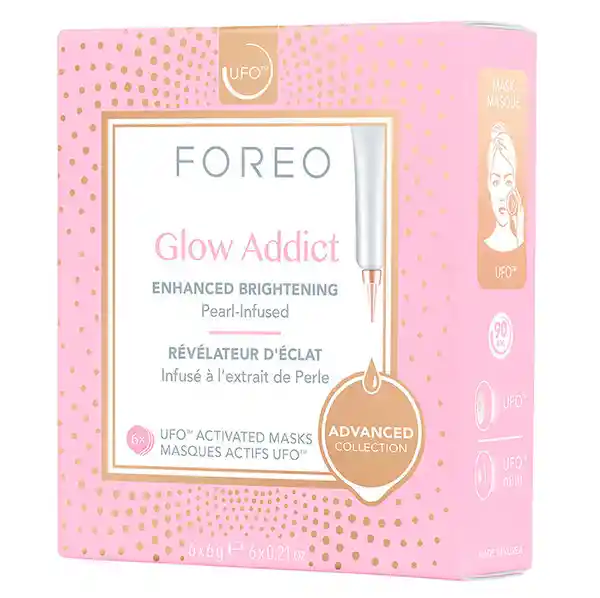 Ufo Glow Addict Masques¡Ilumina tu Rostro!Olvídate de la Piel Flácida y Apagada y Apúntate a Esta Mascarilla Iluminadora y su Exclusivo Ritual Ufo Para Conseguir Una Tez Resplandeciente. El Complejo Aclarante Glow Addict Equilibra Visiblemente el Tono de la Piel y Mejora la Luminosidad Borrando el Tono Apagado y el Aspecto de Cansancio. Tu Piel Lisa y Preparada Para Cualquier Selfie en Solo Unos Segundos. ¡Probada Por Coreanos Expertos en el Cuidado de la Piel!El Extracto de Perlas y la Vitamina e Transforman Este Tratamiento de 90 Segundos en Una Solución Iluminadora Para la Piel. El Extracto de Perla Favorece la Regeneración de la Piel y Corrige Las Diferencias de Tonalidad Del Rostro. La Vitamina e es Antioxidante y Protege de Los Nocivos Radicales Libres Que Penetran en la Piel y de la Pérdida de Hidratación. La Barrera Natural de la Piel Queda Reforzada y la Tez Iluminada. ¡Mascarilla Facial Iluminadora en Acción!Esta Mascarilla Hidratante Comienza su Tratamiento Con 30 Segundos de Termoterapia y de Luz Led Verde Para Uniformizar el Tono de la Piel. La Luminosidad se Consigue Añadiendo Unas Pulsaciones T-Sonic Que Estimulan el Flujo Sanguíneo en la Superficie de la Piel. El Tratamiento Termina Con 30 Segundos de Calor y Luz Led Verde Para Disfrutar de un Tono Más Sano y Una Piel Más Lisa.