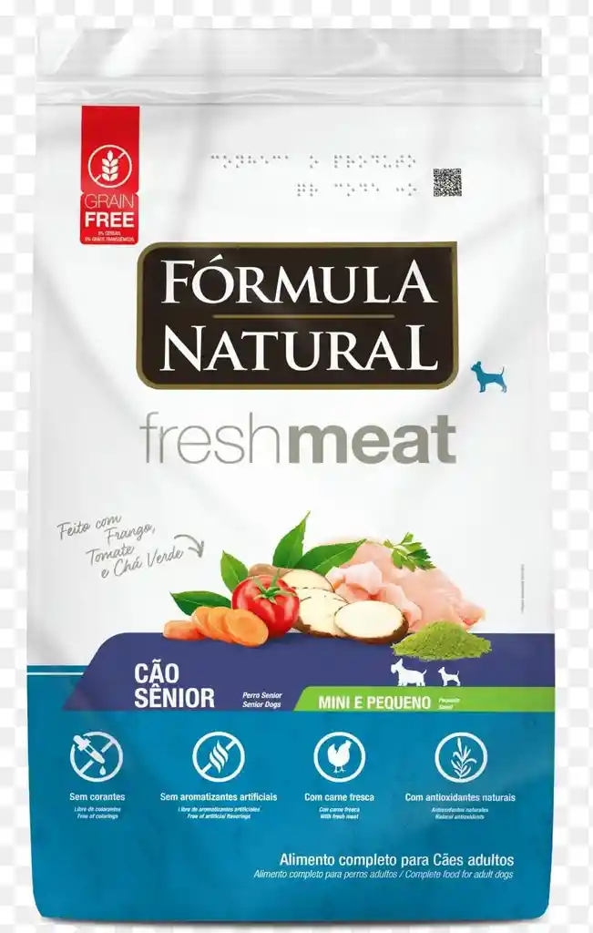 Desarrollada por veterinarios, la línea Natural Fresh Meat Formula utiliza los conceptos más avanzados en nutrición para perros y gatos. Naturalmente sabroso y nutritivo, su principal característica distintiva es el uso de carne fresca y fuentes especiales de carbohidratos, fibra, vitaminas y minerales, como frutas y verduras. Es una línea completa que ofrece versiones con cuidados específicos para diferentes necesidades y etapas de la vida. Fórmula Natural de Carne Fresca para Perros Senior, Tamaños Mini y Pequeños ofrece todo el cuidado para perros miniatura y pequeños a partir de los 7 años de edad.
