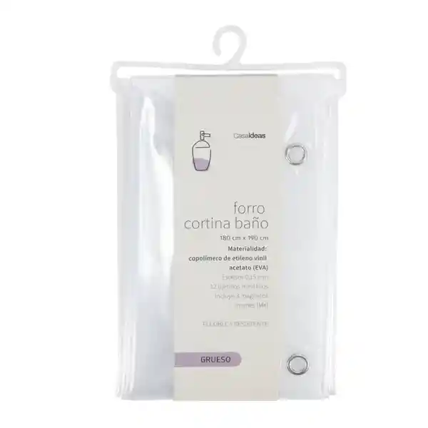 Para Cortina de Baño de Eva Grueso Flexible Resistente y Con 12 Ojetillos Metálicos. Cuenta Con un Espesor de 015 mm e Incluye 3 Magnetos. Tiene un Tamaño de 180 x 190 cm