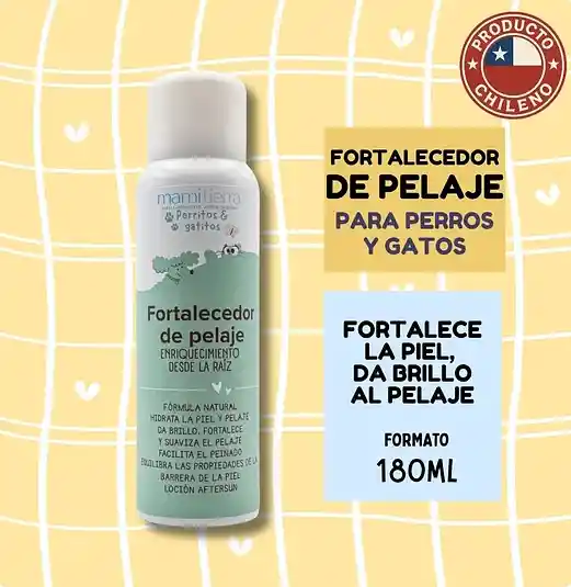 El Fortalecedor de Pelaje mamitierra es un spray premium diseñado para cuidar, proteger y embellecer el manto de perros y gatos. Su fórmula avanzada combina hidrolato de romero, aceite de coco, extracto de aloe vera, aceite de cártamo, fitoqueratina, fibra prebiótica, pantenol y Poliplant, creando un cuidado integral que mantiene el pelaje suave, sedoso y fuerte. Cada ingrediente aporta beneficios específicos: el hidrolato de romero estimula la circulación y revitaliza el pelo; el aceite de coco y el de cártamo nutren e hidratan en profundidad; el aloe vera calma y fortalece la piel; la fitoqueratina y el pantenol reconstruyen la estructura del pelo, evitando quiebres; y la fibra prebiótica y Poliplant protegen frente a agresores externos y favorecen un manto fuerte y saludable desde la raíz hasta las puntas. Ideal para uso diario o después del baño, este fortalecedor facilita el peinado, previene la caída por fragilidad y deja un brillo natural que resalta la belleza de tu mascota. Ingredientes: Hidrolato de romero, aceite de coco fraccionado, sorbitan oleate decyl crosspolymer, aloe vera HG, aceite de cártamo, fitoqueratina vegetal, inulina, pantenol, poliplant y cosgard. Modo de uso: Agitar antes de usar. Aplicar generosamente sobre el lomo de tu mascota. Cepillar o masajear para esparcir siguiendo la línea de crecimiento del pelo. Precauciones: No aplicar directamente en ojos y/o mucosas. En caso de hipersensibilidad enjuagar con abundante agua. Si la molestia persiste suspende su uso y consulta a tu veterinario.