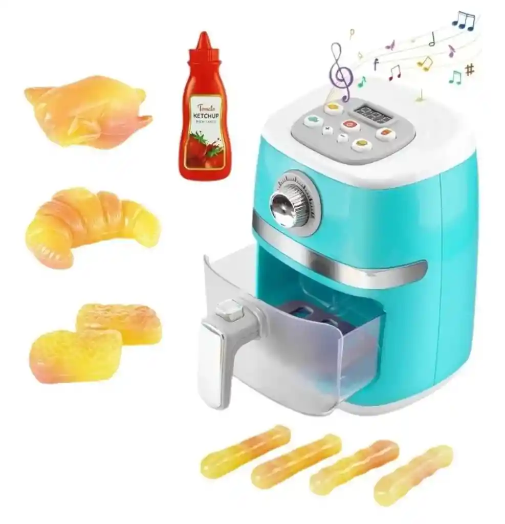 ¡Diversión asegurada en la cocina con esta freidora de aire infantil! Convierte el juego en una experiencia educativa con esta freidora de juguete con accesorios, ideal para niños y niñas mayores de 3 años. Su diseño realista y colorido estimula la imaginación y el juego simbólico, promoviendo la creatividad y habilidades motoras mientras simulan preparar sus propias recetas. INCLUYE: • 1 Freidora de aire de juguete con perilla giratoria • 1 Botella de ketchup (plástica) • 1 Pollo, 1 croissant, 1 papita frita, 1 hamburguesa, 1 waffle (Todos en versión mini de juguete) BENEFICIOS: • Fomenta el juego de roles y la creatividad • Estimula la coordinación mano-ojo • Material plástico resistente y seguro para niños • Ideal para juegos de cocina, regalo educativo o complemento de cocinitas Aproximadas de la caja: 20 cm x 18 cm x 13 cm EDAD RECOMENDADA: +3 años Este producto es un juguete. No es una freidora real ni produce calor.
