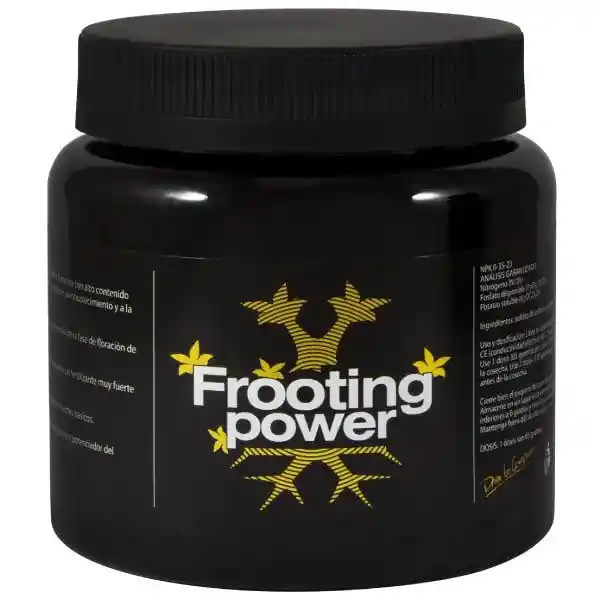 Utilice Frooting Power sólo en plantas sanas, ya que es un fertilizante muy fuerte que exige un gran esfuerzo de sus plantas. Utilice BAC Frooting Power en las últimas 3 a 4 semanas de la fase de floración de sus plantas. No utilice nunca Frooting Power en combinación con otro potenciador del crecimiento. Utilice Frooting Power en combinación con sus fertilizantes básicos.