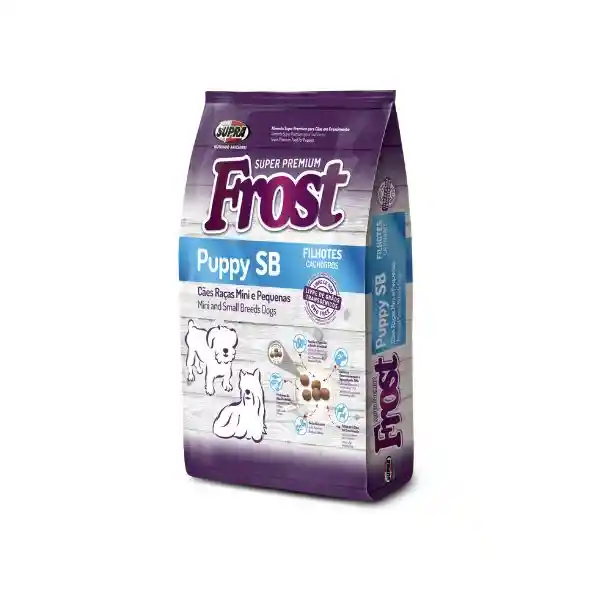 Frost Puppy Small Breed contiene nutrientes de alto valor biológico como carne de pollo, huevo y leche en polvo en equilibrio adecuado para el optimo desarrollo de los cachorros de razas pequeñas y medianas a partir del desteste hasta etapa final de crecimiento. Alto en calcio para los cachorros en crecimiento Protege la mucosa intestinal y ayuda en el proceso de digestión. Heces más firmes y con menos olor. Alimento libre de granos transgénicos; Perros cachorros de pequeño y mediano porte del desmame hasta 12 meses; La mezcla de 6 diferentes fuentes de proteínas de origen animal garantiza un perfil equilibrado de aminoácidos; Producto de alta digestibilidad que proporciona mejor absorción de los ingredientes y menor volumen y olor de heces; Pulpa de betarraga, fibra de arveja, MOS, FOS y probióticos para salud intestinal. Omegas 3 y 6 y minerales quelados que garantizan la salud de la piel y pelo; Leche integral en polvo; DHA para estimular el desarrollo del sistema nervioso y facilitar el aprendizaje de los cachorros; Vitaminas y minerales orgánicos que refuerzan las defensas inmunológicas previniendo las enfermedades; Libre de colorantes. Ingredientes: Harina de Viscera de Pollo, Harina de Salmon, Harina de Pescado, Harina de Chicharrón, Proteína Hidrolizada de Pollo, Huevo em polvo (0.75%), Leche Integral en Polvo (0.1%), Digest de Hígado de Pollos y Cerdos, Arroz Integral, Harina de Trigo, Harina de Trigo Integral, Linaza, Pulpa de Remolacha Deshidratada (2%), Levadura de Cervecería Deshidratada Inactivada, Levadura de Caña-de-Azúcar Deshidratada Inactivada, Fibra de Arveja, Grasa de Pollo, Sal Común, L-Taurina, Zeolita, Extracto de Yuca (0.08%), Vitaminas (Vitamina A, Vitamina C, Vitamina D3, Vitamina E, Vitamina K3, Vitamina B1, Vitamina B2, Acido Nicotinico, Pantotenato de Cálcio, Vitamina B6, Biotina, Acido Folico, Vitamina B12, Cloruro de Colina), Minerales (Sulfato de Cobre, Sulfato de Hierro, Iodato de Cálcio, Sulfato de Manganeso, Selenito de Sódio, Oxido de Zinc, Cloruro de Potasio, Cobre Aminoácido Quelato, Proteinato de Selenio, Zinc Aminoacido Quelato), Antioxidante, Propionato de Cálcio, Sorbato de Potasio, Mananoligosacaridos, Fructoligosacaridos, Probioticos. Este producto no tiene colorantes artificiales en su composición, sujeto a pequeñas variaciones en su color.