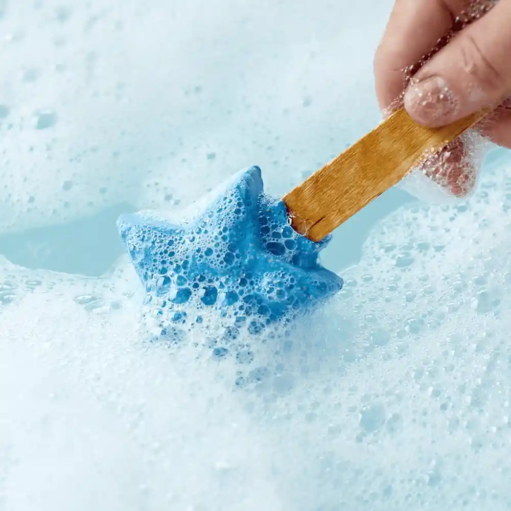 Disfruta de Frozen, una burbuja de baño reutilizable con menta y sal marina para un baño fresco y mágico.