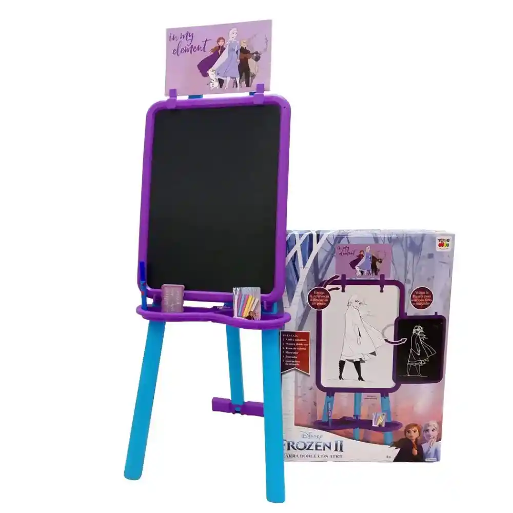 Pizarra Doble Con Atril es el Instrumento o Juguete Ideal Para Que Tus Hijos Dibujen Sus Personajes Favoritos de Disney y Realicen Sus Actividades Escolares Con Creatividad en un Entorno Agradable. Son 2 Pizarras en Una Para Tiza y Otra Plumones (100 x 35 x 48), 6 Tizas de Colores, 1 Marcador Acrílico, 1 Borrador Doble Uso. Medidas : 56.4 x 41 x 5.5
