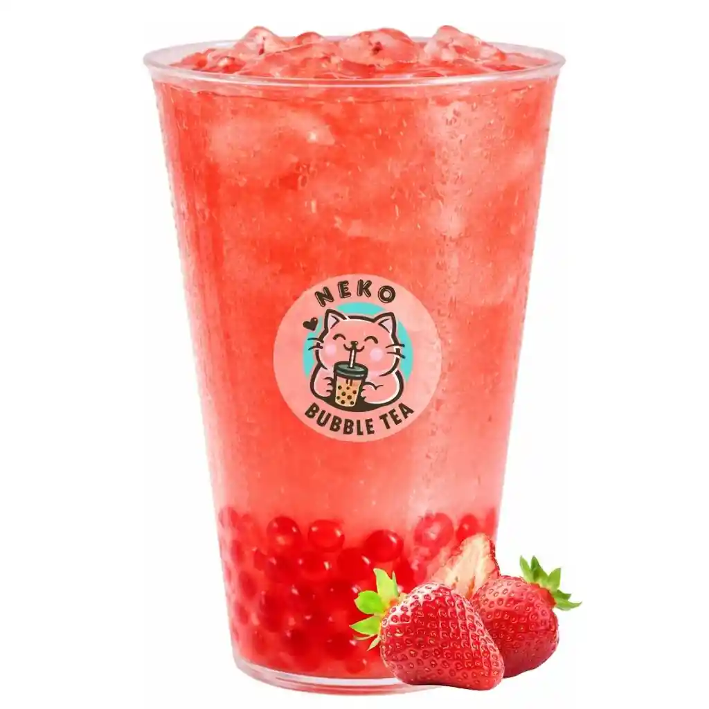 Fresca frutilla natural, refrescante con hielo, té verde y poppings de frutilla.