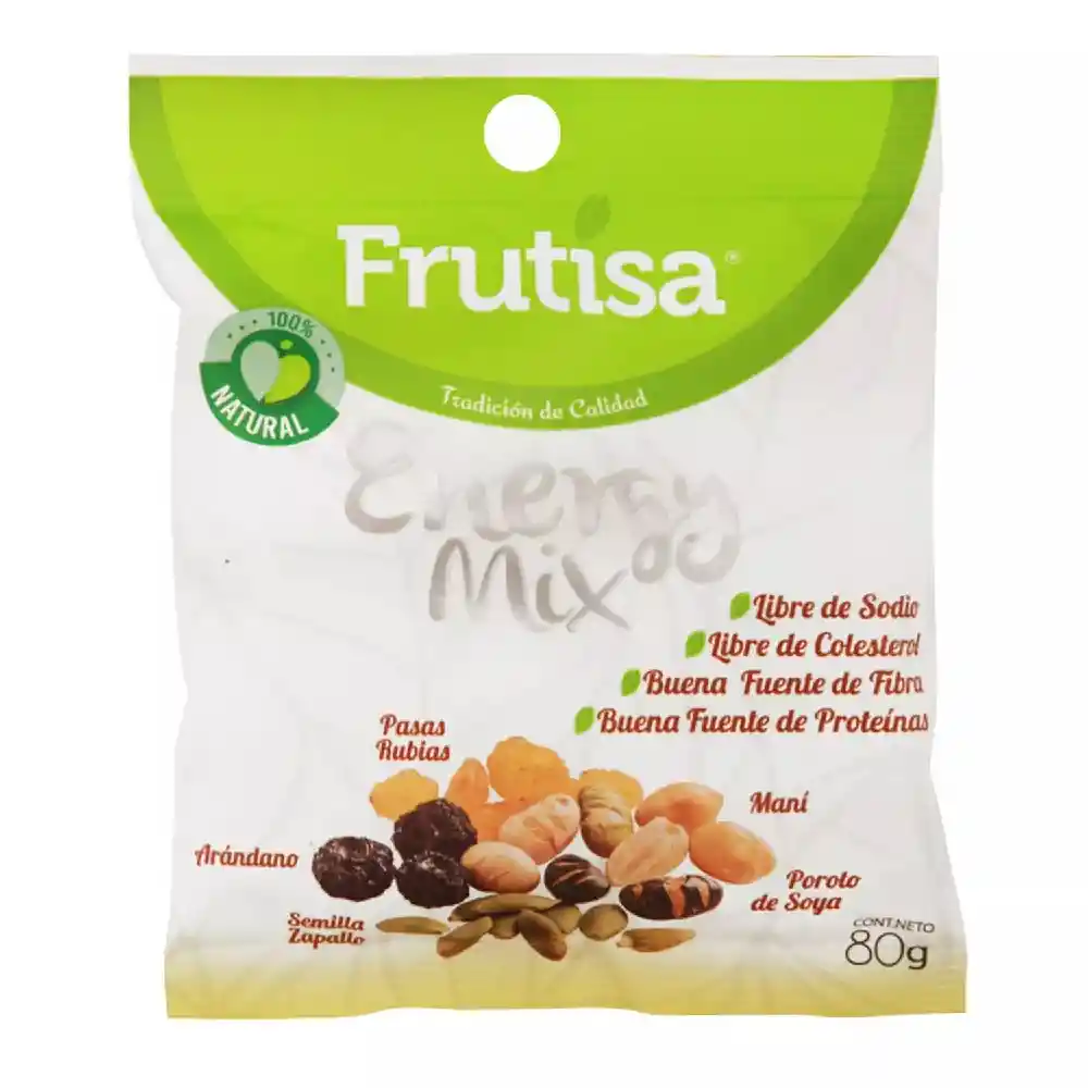 Este delicioso mix es 100% natural, es buena fuente de fibra y de proteínas, es libre de sodio y libre de colesterol. Ideal para que lo disfrutes como un snack saludable en cualquier momento el día. Contiene: maní, pasas rubias, arándano, semilla de zapallo y poroto de soya. packing: Bolsa