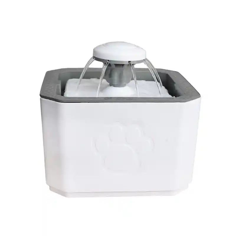 Fuente de agua para mascotas de 2.5 litros, ideal para darle agua fresca a gatos y perros del hogar, con un sistema bastante silencioso, incluyen 2 filtros de excelente bio-carbón, que aumentará la calidad del agua y las mascotas podrán disfrutar de agua más saludable y más limpia. El agua corriendo continuamente atrae y anima a las mascotas a beber más agua y mantiene sus mascotas hidratadas. Filtro de carbón activo que mantiene el agua fresca y limpia, operación silenciosa en la noche. Características: - Diseño Compacto - Mantiene el agua fresca - Capacidad de 2.5 Litros