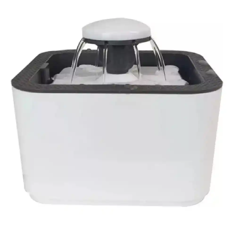 Manten a tu mascota siempre hidratada con esta fuente bebedero cuadrada, diseñada para ofrecer agua fresca y limpia de manera constante. Su sistema de filtrado de carbón elimina impurezas, mientras que el funcionamiento USB facilita la conexión y el ahorro energético