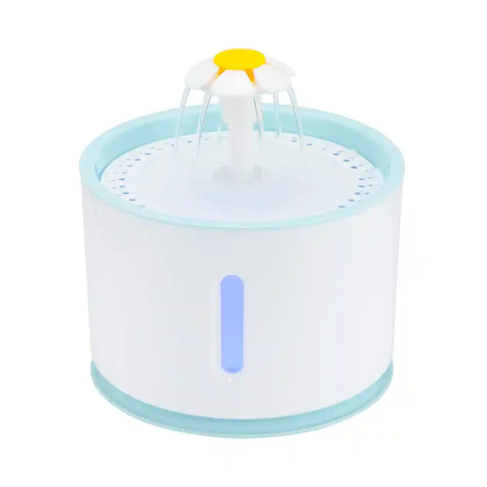. No es necesario reponer el agua con frecuencia, y puede satisfacer las necesidades de beber de gatos, perros, pájaros y otras mascotas de varios tamaños. . Agua limpia y siempre corriente. . Bomba con diseño único se utiliza con ventosa personalizada para reducir el ruido al mínimo. . Diseñada para una fácil extracción y limpieza. . Equipado con LED, que puede ver el nivel de agua . Cuando funciona, el LED es azul. El artículo no funciona hasta que el nivel de agua supera la bomba. . Alimentado por cable USB. . Material: plástico PP + acero inoxidable. . Color: blanco + celeste. . Capacidad: 2,4 L (80 oz). . Voltaje de entrada: 5V,1A . Consumo de energía: 1,5 W. . Resistente al agua: IP68.
