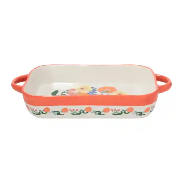 Capacidad de 1300 mL. Horno Rectangular Con Asas. Su Composición de Cerámica de Gres y Colorido Diseño Pintado a Mano le da un Aspecto Único y Delicado Que Será el Centro de Atención en Tus Comidas. Cuenta Con Una Capacidad de 2300 ml.