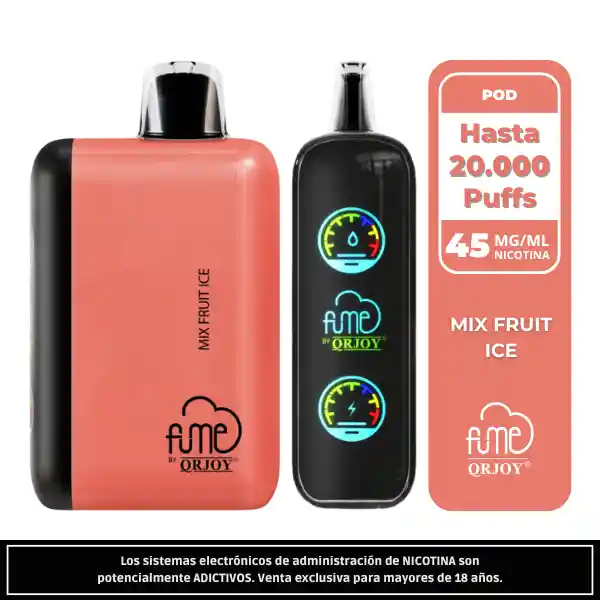 Fume Eternity Mix Fruit Ice 20.000 Puffs combina una mezcla de frutas dulces con un refrescante toque helado, logrando un sabor vibrante, jugoso y muy fresco. Con 18ml de sales al 4.5%, batería USB-C de 850mAh ⚡ y pantalla LED , ofrece gran duración y excelente rendimiento.