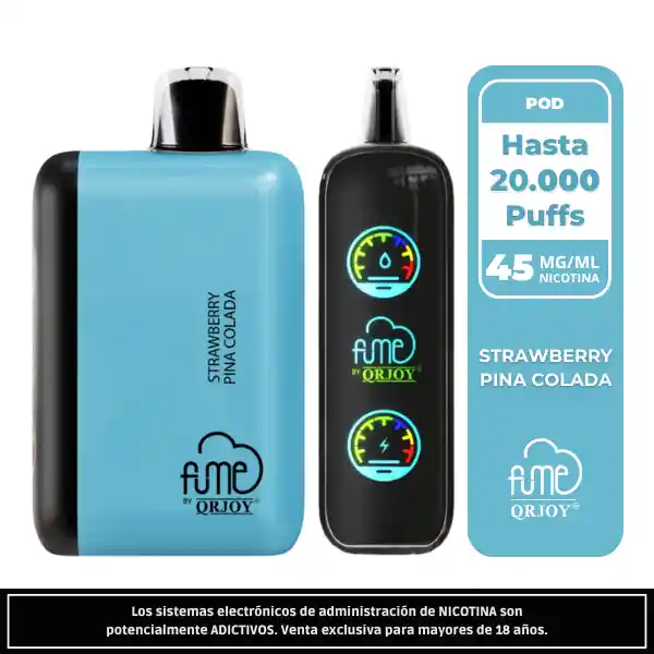 Fume Eternity Strawberry Piña Colada 20.000 Puffs mezcla frutilla dulce con piña tropical y coco cremoso para un perfil frutal refrescante y veraniego. Con 18ml de sales al 4.5%, batería USB-C de 850mAh ⚡ y pantalla LED , ofrece excelente duración y gran sabor.