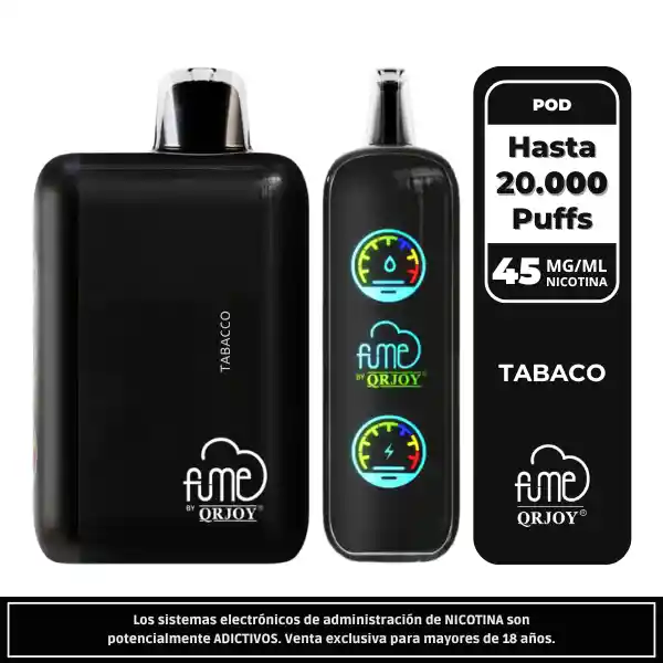 Fume Eternity Tobacco 20.000 Puffs ofrece un sabor clásico de tabaco suave, cálido y ligeramente dulce, ideal para quienes buscan un perfil tradicional. Con 18ml de sales al 4.5%, batería USB-C de 850mAh ⚡ y pantalla LED , brinda una experiencia madura, limpia y de larga duración.