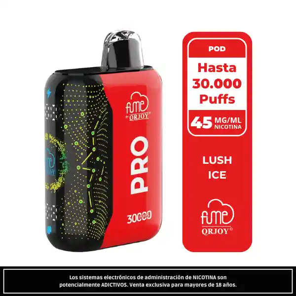 Fume Pro Lush ICE 30.000 Puffs combina sandía dulce y jugosa con un golpe helado refrescante. Incluye 18 mL de nic salt al 4,5 %, bobina mesh dual 0.8Ω, pantalla HD y batería USB-C de 1400 mAh. Sabor frutal, frío y potente en cada calada.
