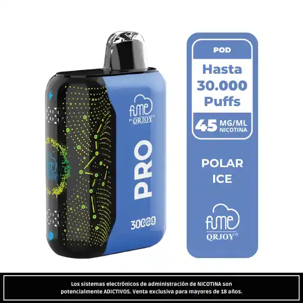 Fume Pro Polar Ice 30.000 Puffs ❄️ ofrece un mentol ultra frío, limpio y penetrante, ideal para amantes del frescor extremo. Incluye 18 mL de nic salt al 4,5 %, bobina mesh dual 0.8Ω, pantalla HD y batería USB-C de 1400 mAh. Una experiencia helada, intensa y revitalizante.