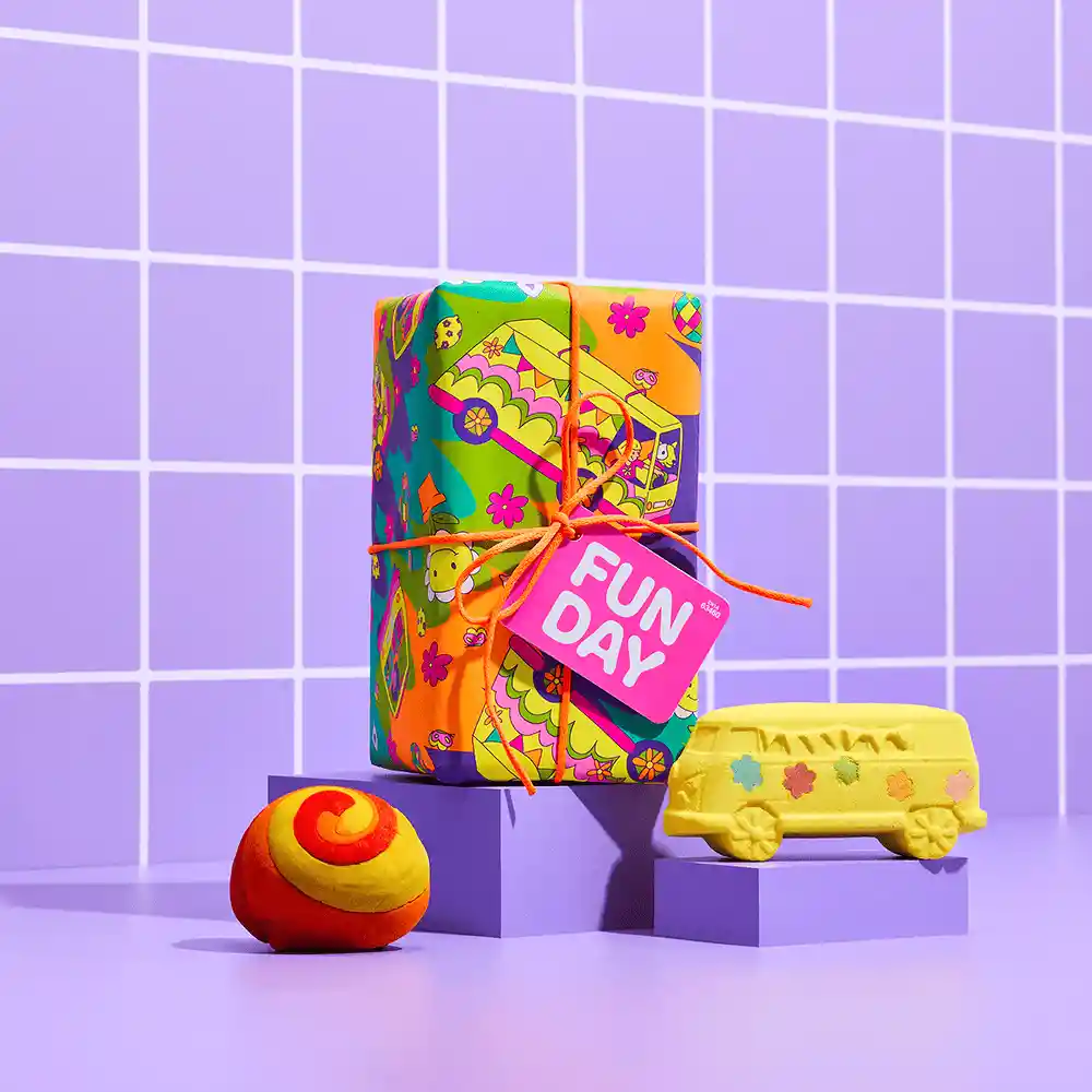 Fun Day es un regalo alegre e inspirado en road trips, con productos cítricos y burbujeantes para una experiencia divertida y animada.