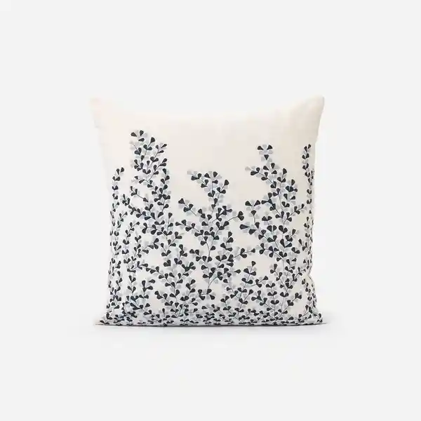 Funda Cojín de 50 x 50 cm de Tela 100% Algodón y Bordado Sutilmente Con Características Botánicas en Tono Azul. Hecho en India.