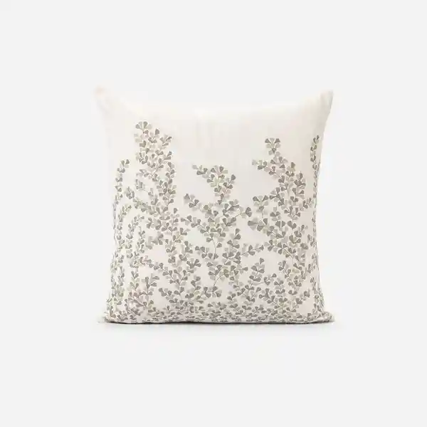Funda Cojín de 50 x 50 cm de Tela 100% Algodón y Bordado Sutilmente Con Características Botánicas en Tono Natural. Hecho en India.