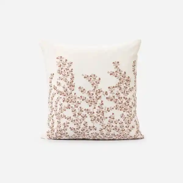 Funda Cojín de 50 x 50 cm de Tela 100% Algodón y Bordado Sutilmente Con Características Botánicas en Tono Terracota. Hecho en India.