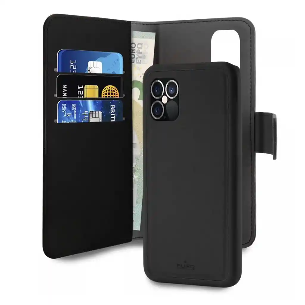FOTO REFERENCIAL Características: - Los bolsillos de tamaño perfecto se ajustan perfectamente a sus tarjetas y dinero en efectivo - El sistema magnético impide que la tapa se abra de forma inesperada - La textura de poliuretano se ve muy bien y se limpia fácilmente - La carcasa dura integrada mantiene su iPhone protegido - Protege su smartphone del polvo, arañazos y pequeños golpes celular