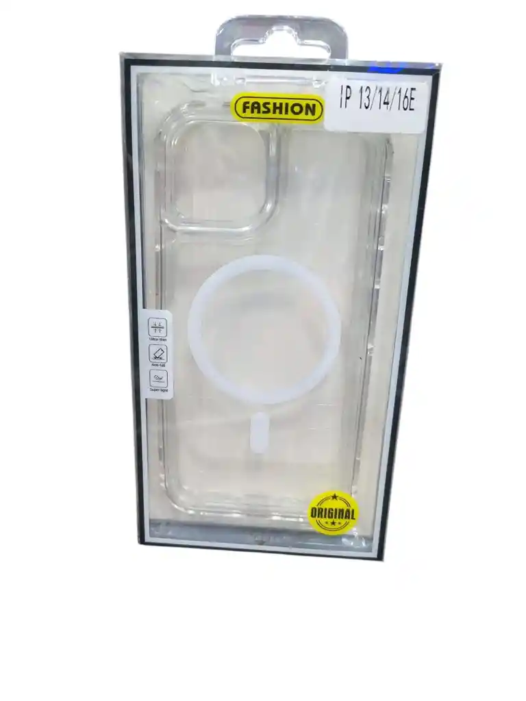 Funda transparente con aro magnético blanco. Ultrafina y liviana, con carga inalámbrica segura.