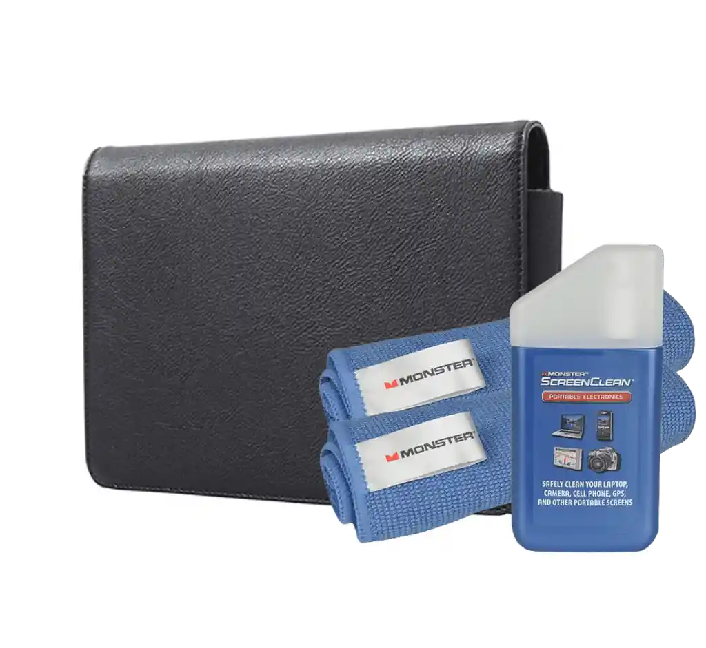 Descripción Funda: Estuche organizador negro Ultralife para accesorios, brinda una forma todo en uno de organizar y transportar los accesorios de su computadora portátil. Los bolsillos interiores almacenan su unidad flash y lápiz óptico. Tiene un concepto tipo bolsa con compartimentos para cable y mouse. Ayuda a mantener sus accesorios en orden y accesibles, además de protegerlos de golpes, rayones y contacto incidental. Especificaciones: Material: exterior de cuero sintético, interior de microgamuza Peso: 0,2 kg Dimensiones: 30 × 21 × 2,5 cm Descripción Kit limpiador: Solución sin alcohol y sin amoníaco elimina de forma segura las bacterias, el polvo, la suciedad y las huellas dactilares del smartphone, pantallas de Tablet (ipad) y dispositivos electrónicos portátiles. • Botella pulverizadora de bomba • Solución sin alcohol y sin amoníaco • El polímero especial ayuda a proteger las superficies sin goteos, rayas ni manchas. • Incluye dos (2) toallas de microfibra Monster