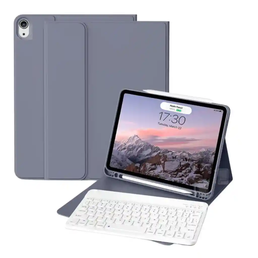 Esta funda permite posicionar tu teclado y lapiz pudiendo transportar todo en una solo lugar