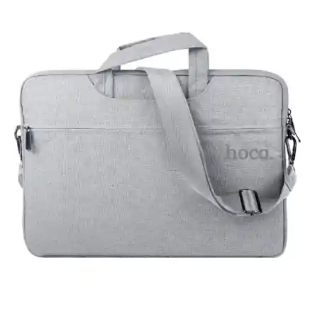 Funda para Notebook Hoco GT1 14" Bolsa para portátil Hoco GT1 es una bolsa sencilla en la que cabe un portátil de hasta 14 pulgadas. Incluye una correa para el hombro y ofrece varios dispositivos útiles. También destaca por su precio. La bolsa para el MacBook 14 tiene varios bolsillos. El principal tiene capacidad para una computadora portátil de hasta 14 pulgadas, por lo que puede colocar fácilmente una MacBook Air de 13 pulgadas o una MacBook Pro de 14 pulgadas en su interior. Hay un bolsillo con cremallera más pequeño en la parte delantera. Allí caben, por ejemplo, material de oficina o documentos más pequeños que necesite tener a mano rápidamente. Dentro del bolsillo grande también encontrarás varios bolsillos más pequeños y prácticos. Se puede hacer fácilmente un bolso de hombro con una cartera. Conecte la correa para el hombro suministrada a los ojales metálicos de los laterales con mosquetones y podrá llevar la bolsa sobre el hombro cuando viaje distancias más largas. Luego puede agarrar la bolsa por las dos orejas superiores para transportarla rápidamente. Pero también se pueden ocultar y tomar un camino aún mayor de minimalismo. El bolso pequeño también es liviano y si no llevas una gran cantidad de accesorios con tu computadora, será una opción ideal. También podrás llevarlo al aeropuerto, porque tiene un cinturón en la parte trasera que puedes utilizar para pasar las asas de tu maleta. De esta forma viajarás por el aeropuerto con ambas maletas de forma más segura y juntas. Y la lluvia tampoco le molestará, porque el material exterior resiste bien el agua