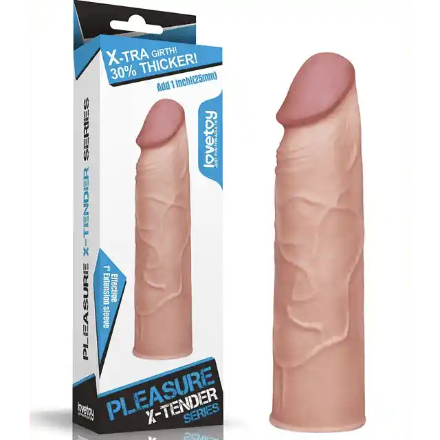 Aumenta el largo y grosor de tu miembro, con estas fundas Pleasure X-Tender de LOVETOY, que te darán un más centímetros, con la comodidad de una funda flexible y suave para el cuerpo. Cautiva, con su diseño realista y textura suave. Características: Color: Rosa Tamaño: Longitud (Manga) 16,5 cm Longitud (Manga interior) 13,5 cm Ancho (manga) 3,5 cm Funciones de modelo: Funda para pene Certificación: CE Aprueba de agua: Si Recomendaciones de uso: Lávalo antes y después de utilizarlo con agua tibia y jabón Si es de uso personal con tu pareja, no necesitas preservativo para utilizarlo Siempre guárdalo seco y en un lugar sin humedad Se recomienda no sumergirlo por mucho tiempo en el agua para evitar problemas Siempre debes guardarlo solo, sin ningún otro juguete, para que ninguno de los dos se estropee