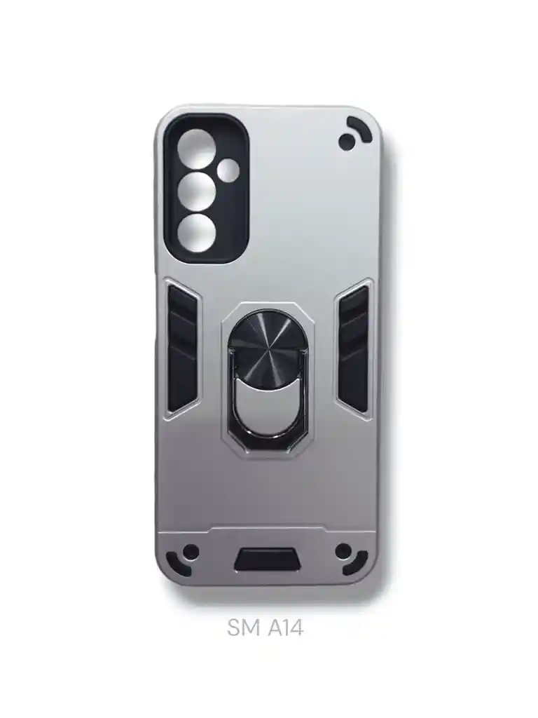 Funda protectora plateada con anillo giratorio, diseño moderno y resistente