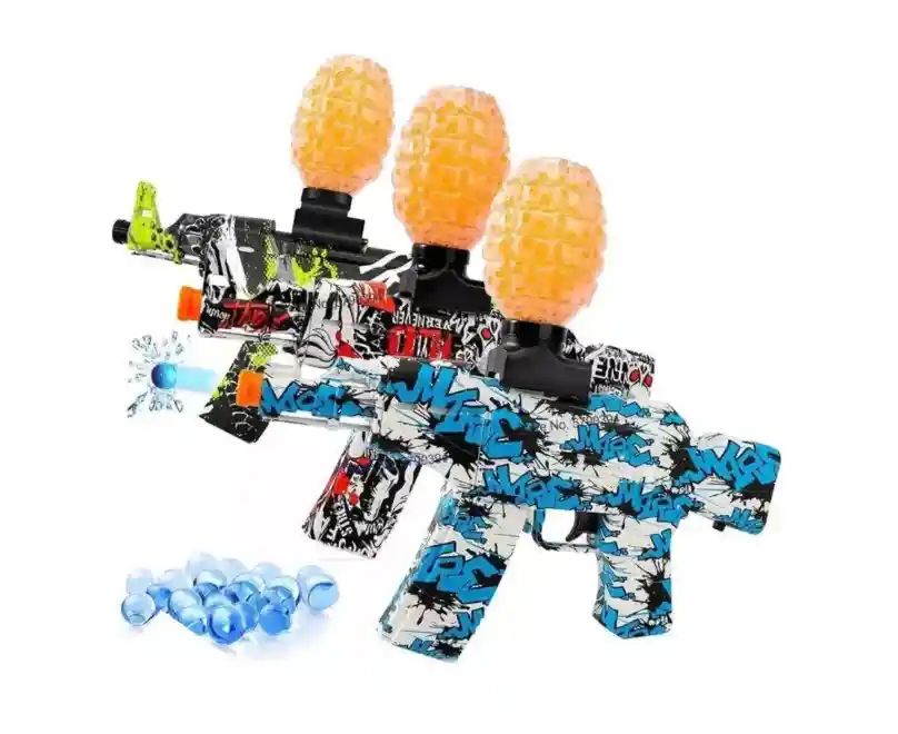 Practica pistola automática, de juguete con balín de hidrogel. - No hace daño pero es importante no disparar a los ojos. - Incluye 1000 balines de hidrogel. - Batería recargable. - Automática/manual. - Colores surtidos: Rojo, azul y amarillo. - Pila recargable. - Incluye lentes de protección. - Mide: 28x18cm.