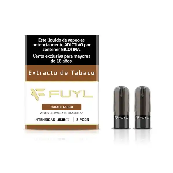 FUYL Extracto de Tabaco Rubio (Pack 2 Pods): tabaco claro y equilibrado, con leves notas tostadas. Intensidad media. Incluye 2 pods del mismo sabor (18 mg) sistema cerrado, compatible con dispositivos FUYL. Rendimiento aprox.: 2 × 30 cigarros (según uso).