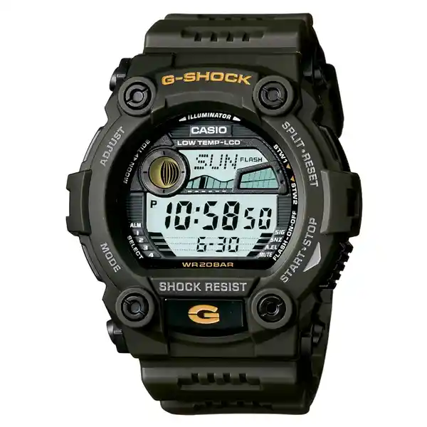 Reloj Hombre Deportivo. Casio Desde 1983 G-Shock Establece el Estándar en Resistencia. Construcción Resistente a Impactos Que Soporta Caídas y Tratamientos Rudos Además de Ofrecer Una Resistencia al Agua Hasta Una Profundidad de 200 Metros.