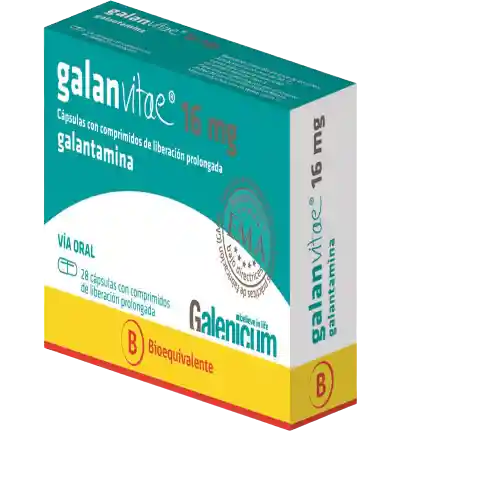 Principio Activo: Galantamina Concentración: 16 mg Forma Farmacéutica: Cápsulas Equiv. Terapéutico. Con 28 Cápsulas.