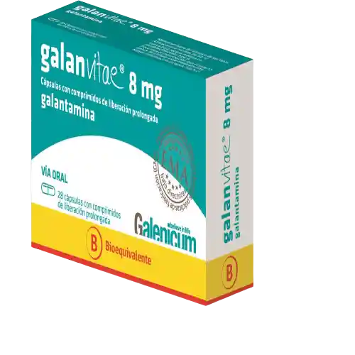 Principio Activo: Galantamina Concentración: 8 mg Forma Farmacéutica: Cápsulas Equiv. Terapéutico. Con 28 Cápsulas.