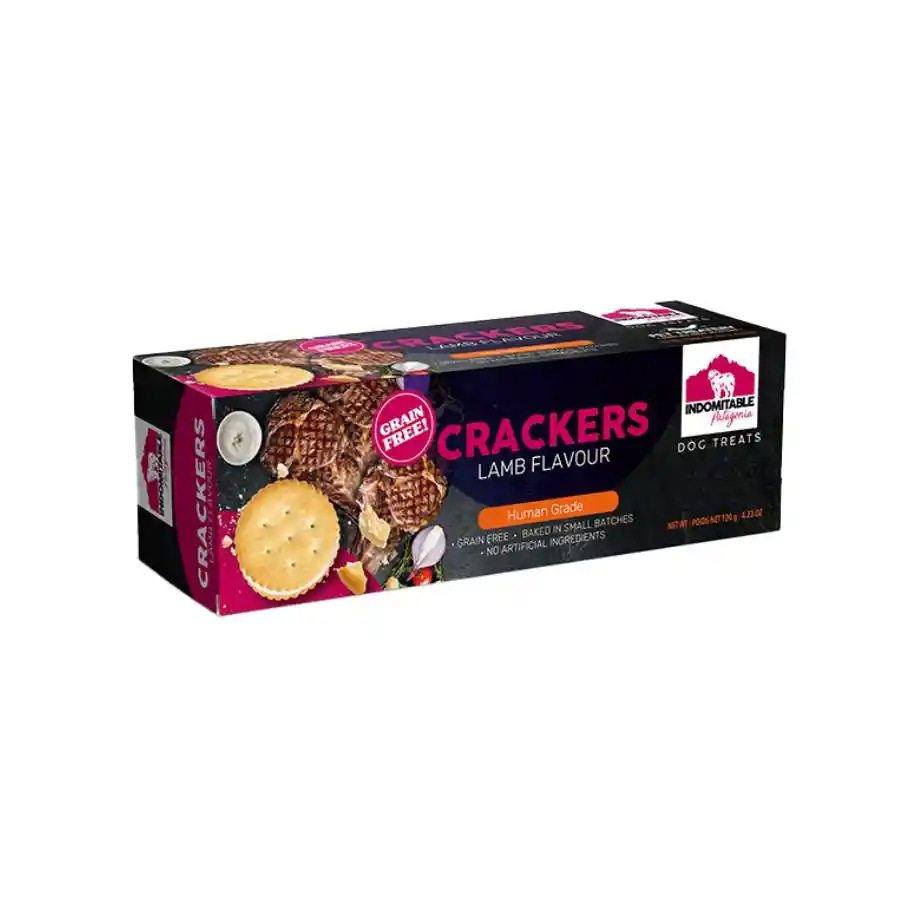 Indomitable Cracker sabor a Cordero son deliciosas y saludables galletas hechas con ingredientes super premium, no contienen cereales y están rellenas de una deliciosa crema que le encantará a su perro. Además, son horneadas lentamente en pequeñas cantidades para aumentar su crocancia. Perfectas para consentir a los perros de todas las razas.
