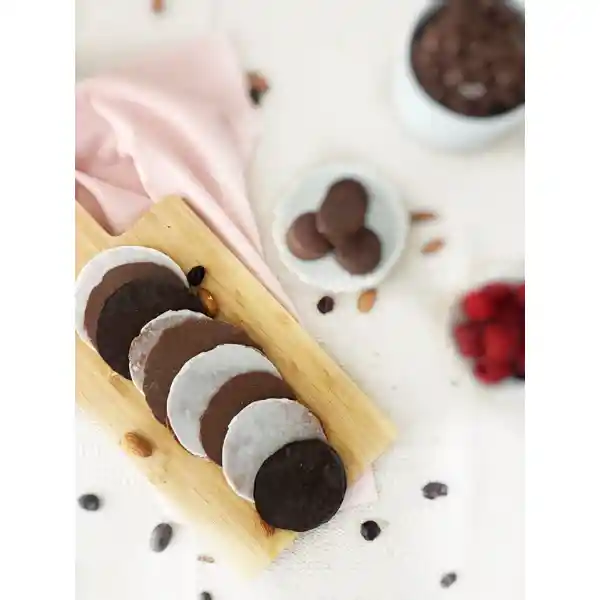 No podemos describirlas, tienes que probarlas. delgadas y crocantes y con una fina capa de chocolate leche, bitter y blanco. increíbles para acompañarlas con un rico café o comerlas solas una a una. bolsa 10 unidades surtidas.