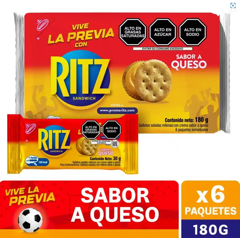 Galletas Saladas RITZ sabor Queso Paquete 6un
