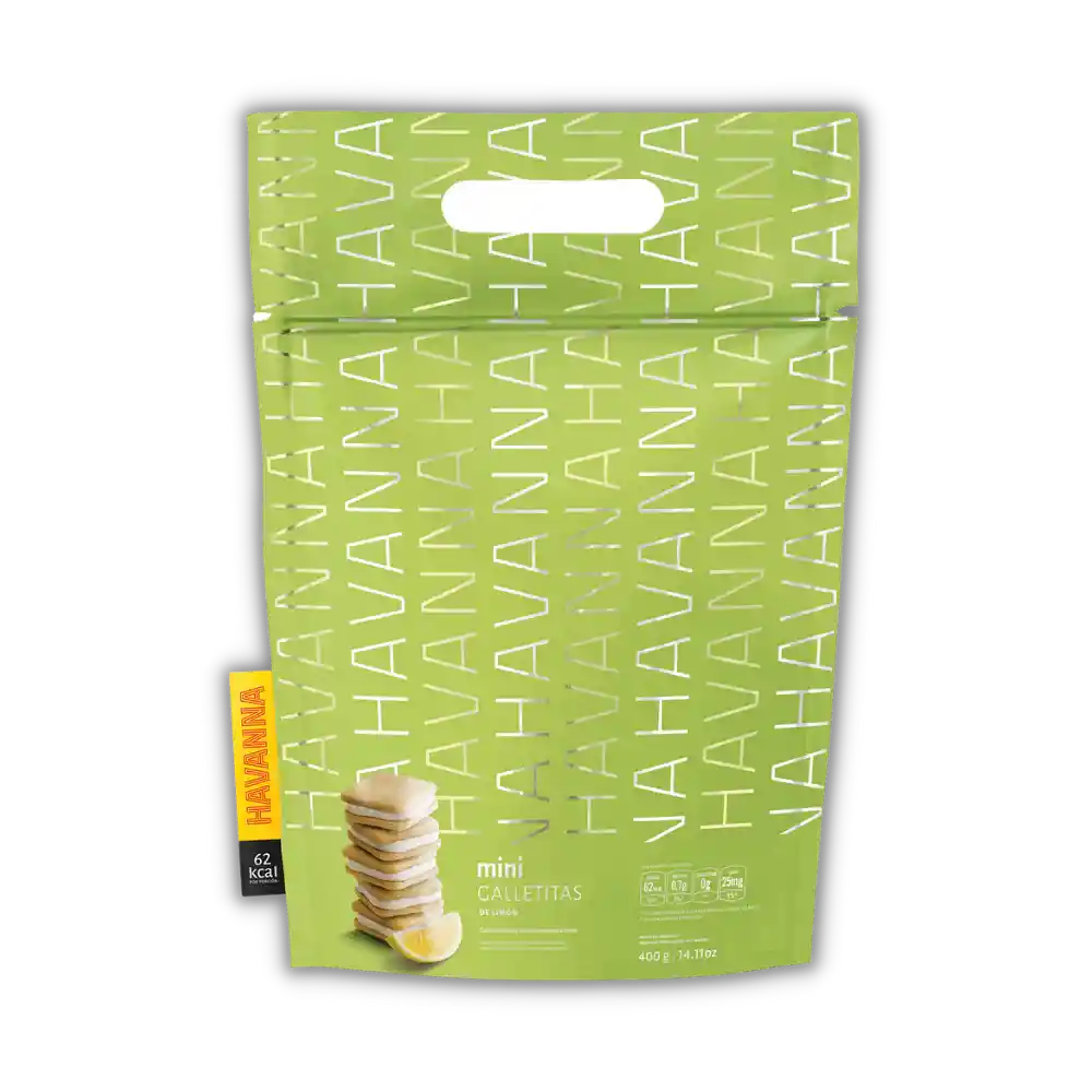 Tentadoras mini galletitas horneadas rellenas con la más suave crema sabor a limón (400 g).