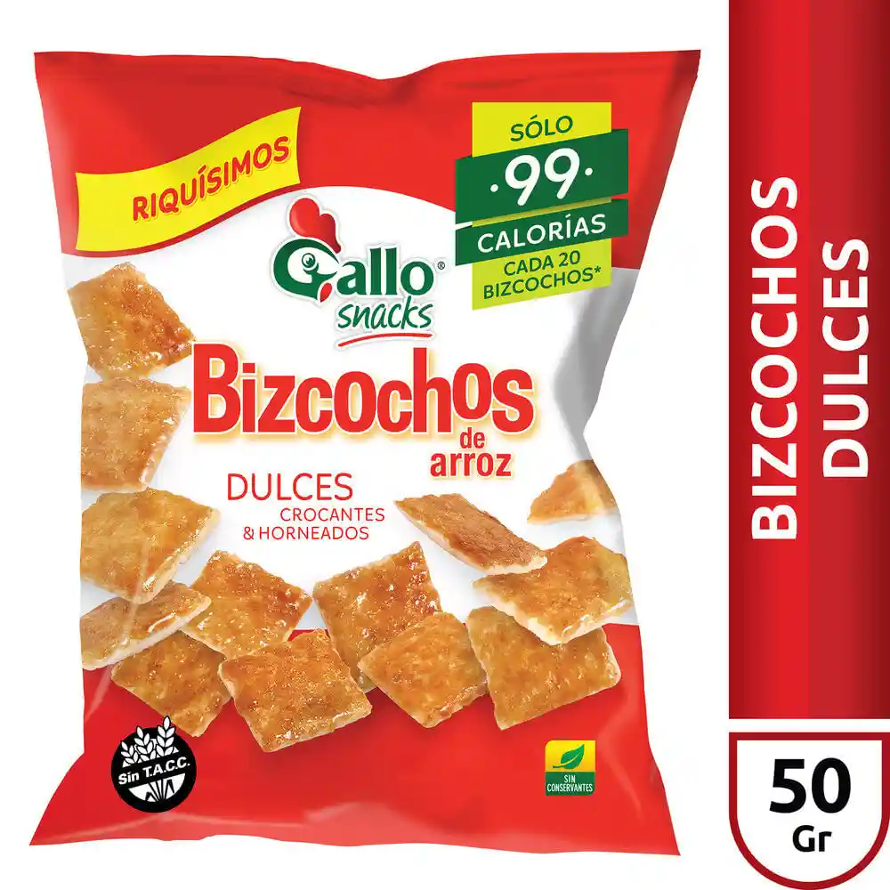 Disfruta de unos deliciosos, crocantes y horneados bizcochos dulces, hechos a base de arroz, sin gluten, con solo 99 calorías por porción, perfectos para comer como snack en cualquier momento del día, lugar u ocasión.
