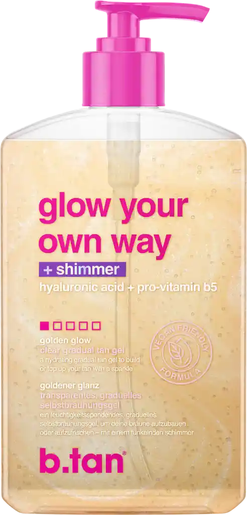 Gel autobronceante con shimmer que aporta bronceado y brillo luminoso.