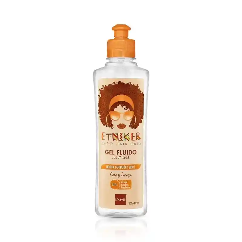El gel fluido Etniker ha sido diseñado especialmente para cabellos afro, rizados y con textura, ofreciendo fijación flexible y brillo natural. Gracias a su fórmula con coco y linaza, moldea el cabello sin resecarlo, aportando definición y nutrición desde la raíz hasta las puntas