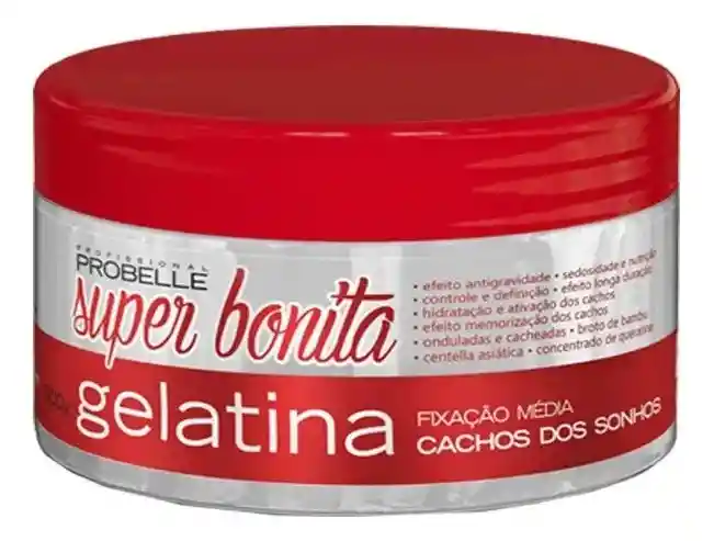 Logra los rizos de tus sueños con la gelatina Probelle Super Bonita. Fórmula con brote de bambú, centella asiática y queratina que hidrata, activa y memoriza tus rizos, ofreciendo fijación media con efecto antigravedad. Ideal para cabellos ondulados y rizados, aporta sedosidad, nutrición y definición duradera. Perfecto para rizos naturales y llenos de movimiento. Contenido: 300 g.