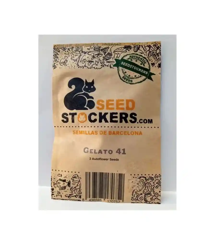 Gelato 41 auto de Seedstockers Genética: (Sunset Sherbet X Thin Mint GSC) x Northern Lights Auto Tipo: Automática Cantidad de semillas 3 Indica dominante Thc: 23 % Rendimiento: XL Ciclo completo: 9 – 10 semanas Efecto: relajante Sabor: Dulce